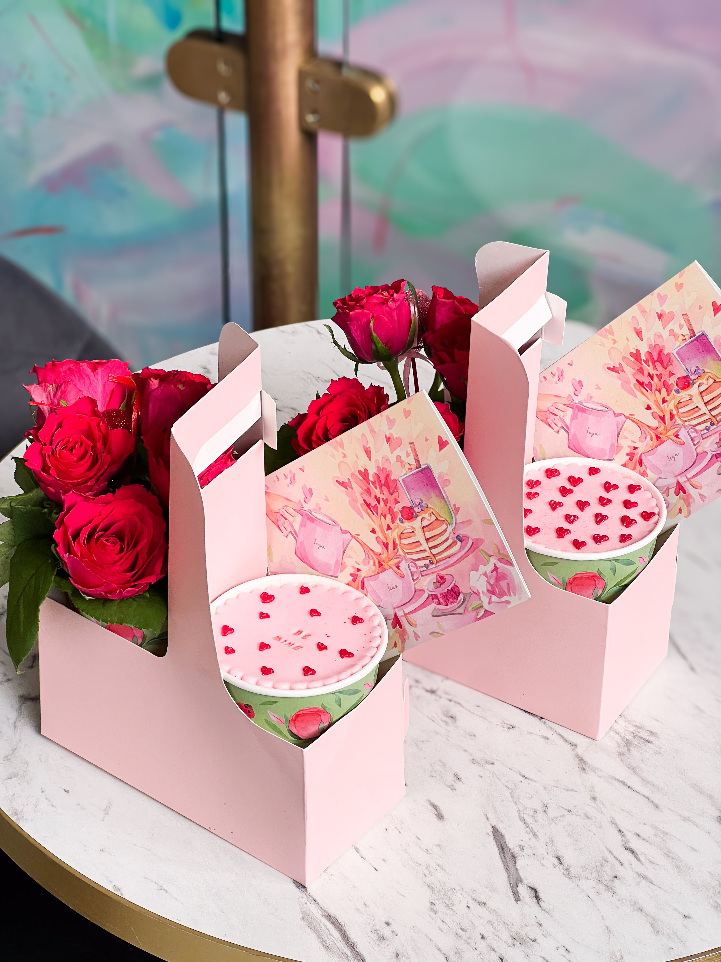 From 13th–15th February, delight your loved one with our exquisite mini cakes paired with fresh, hand-picked roses, available for pick-up at Feya Marble Arch.